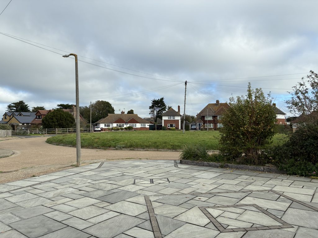 Paved and space for several vehicles, driveway leading to garage and front door, outside power socket, outside tap.