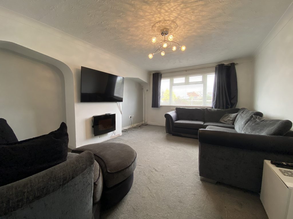 Carpet, upvc double glazed window to the front of the property, radiator, wall mounted electric feature fire, ceiling mounted light, range of sockets around the room, mark 5c telephone socket.