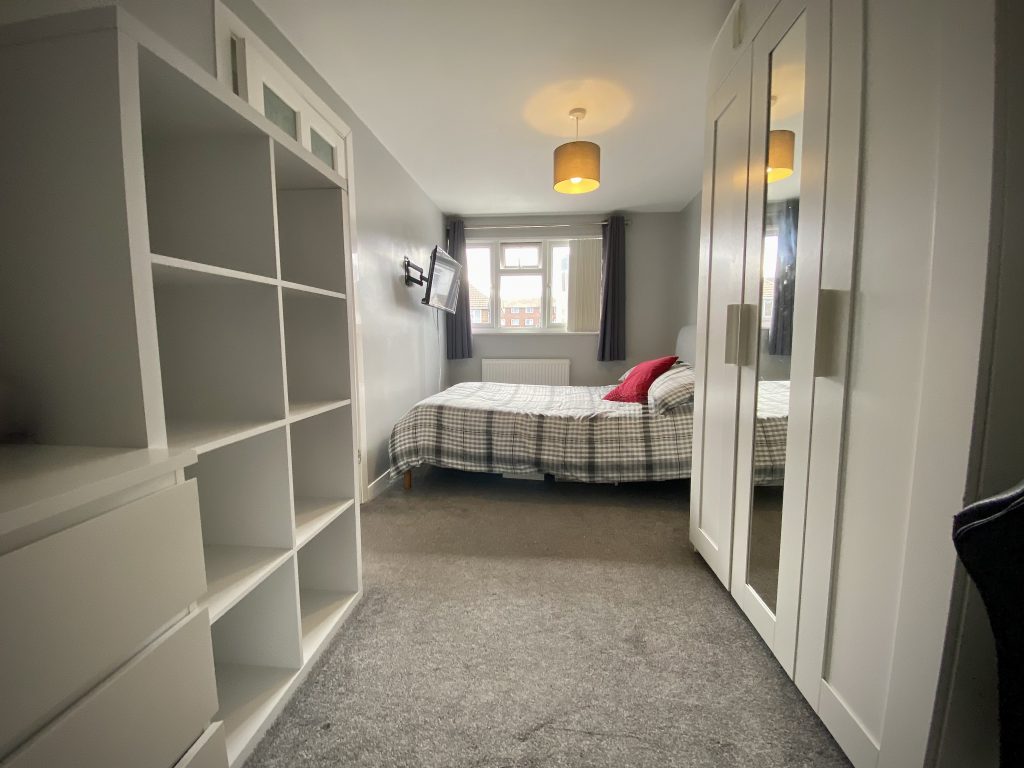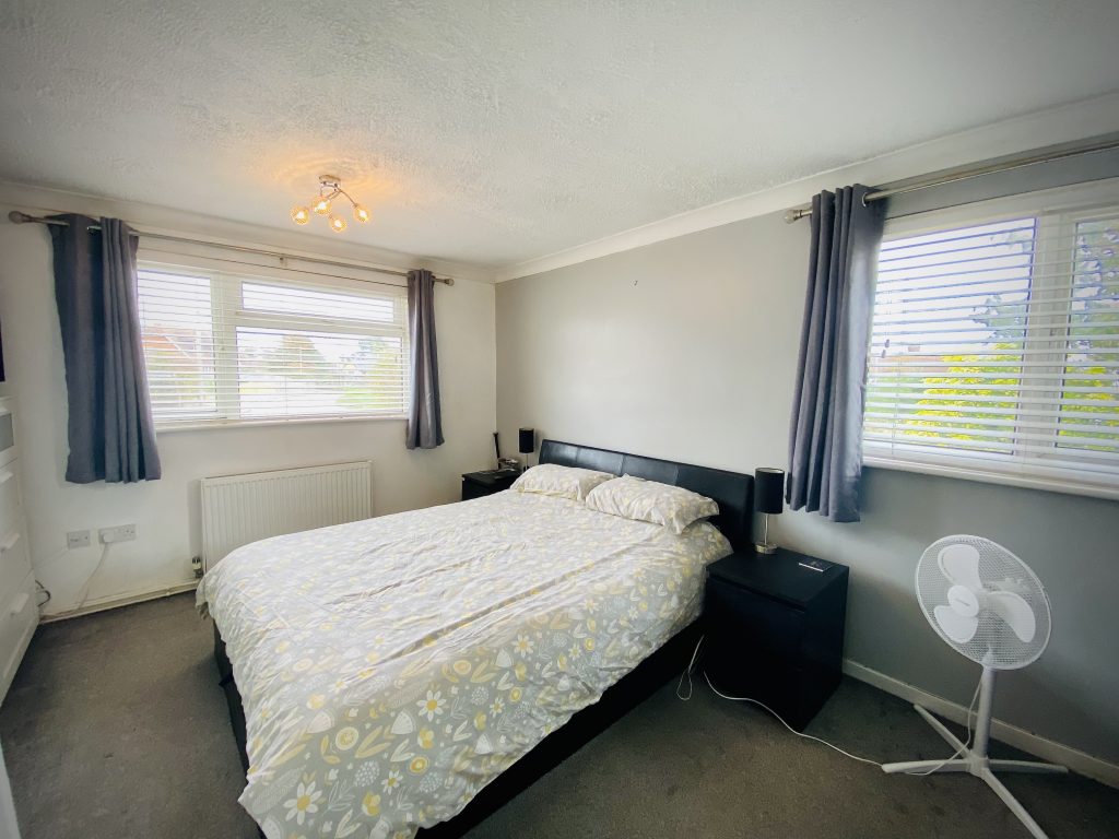 Carpet, radiator, ceiling mounted light, upvc window to the front and side.